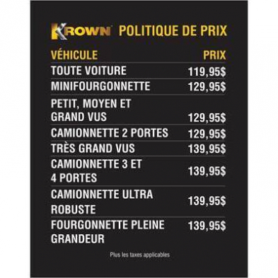POSTER - FRENCH PRICE LIST (LISTE DE PRIX) 22 X 28